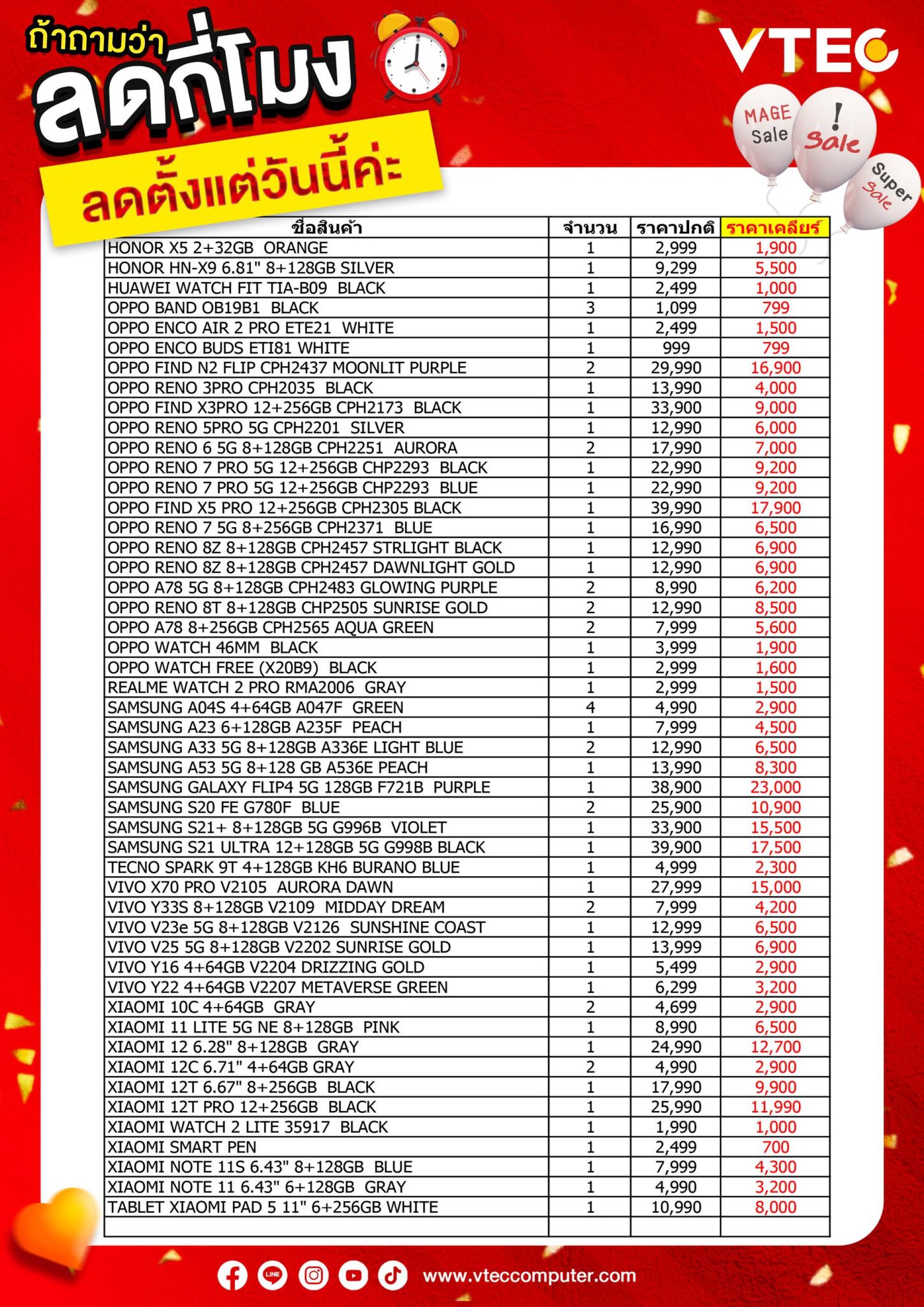 ถ้าถามว่าจะลดกี่โมง ลดตั้งแต่วันนี้ค่ะ สินค้าเดโม่ราคาดีมาแล้ว พร้อมคุณเป็นเจ้าของแล้ววันนี้ที่ วีเทค สาขาสี่แยกไฟแดงวัดญวน หรือ โทร.081-0099969