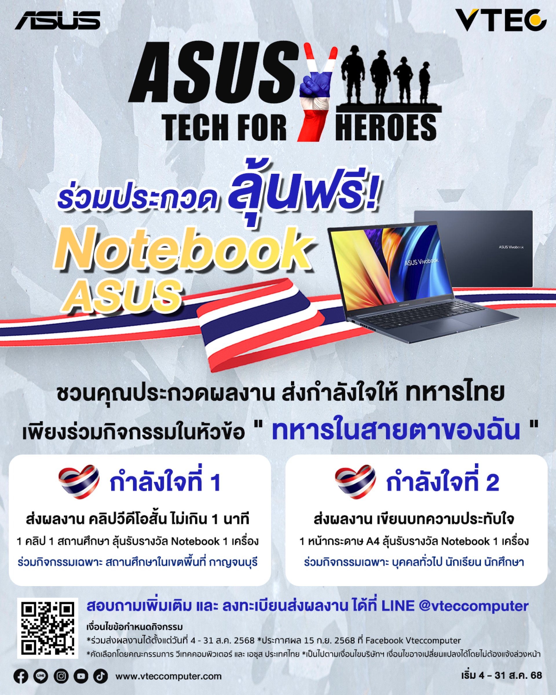 วีเทคคอมพิวเตอร์ และ ASUS ชวนคุณส่งกำลังใจ ให้ทหารไทย เพียงร่วมประกวดกิจกรรมหัวข้อ " ทหารในสายตาของฉัน " ลุ้นฟรี! Notebook ASUS