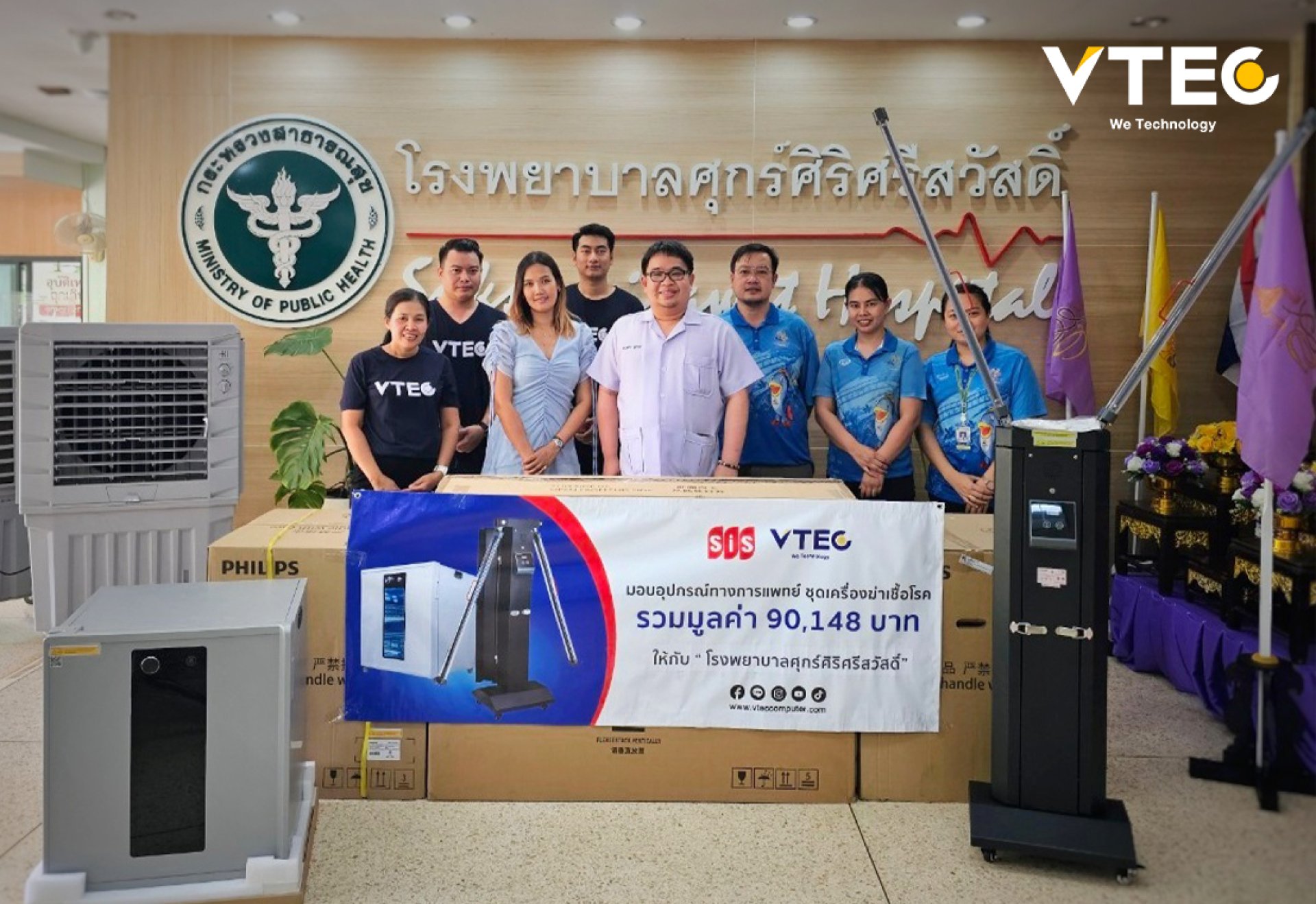 วีเทคร่วมส่งมอบอุปกรณ์ทางการแพทย์ให้กับโรงพยาบาลศุกร์ศิริศรีสวัสดิ์ จังหวัดกาญจนบุรี