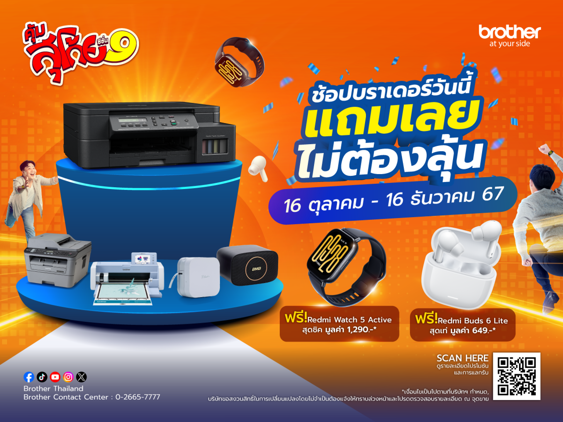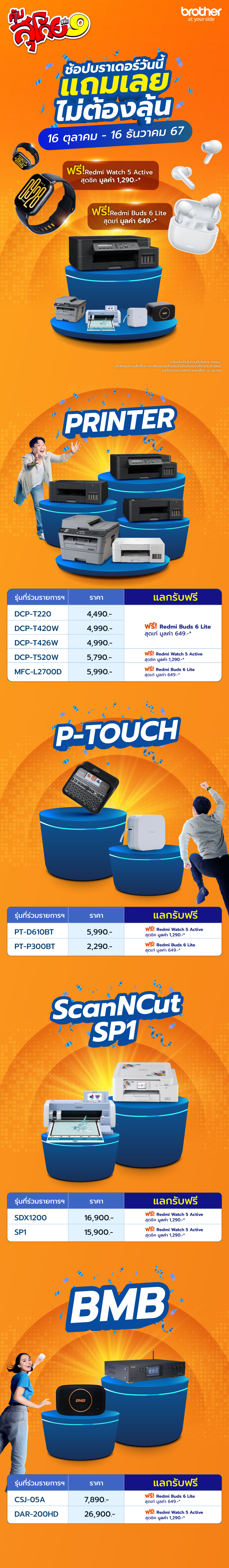 1. ช้อปปริ้นเตอร์รุ่น DCP-T220, DCP-T420W, DCP-T426W, MFC-L2700D แลกรับฟรี Redmi Buds 6 Lite มูลค่า 649.-