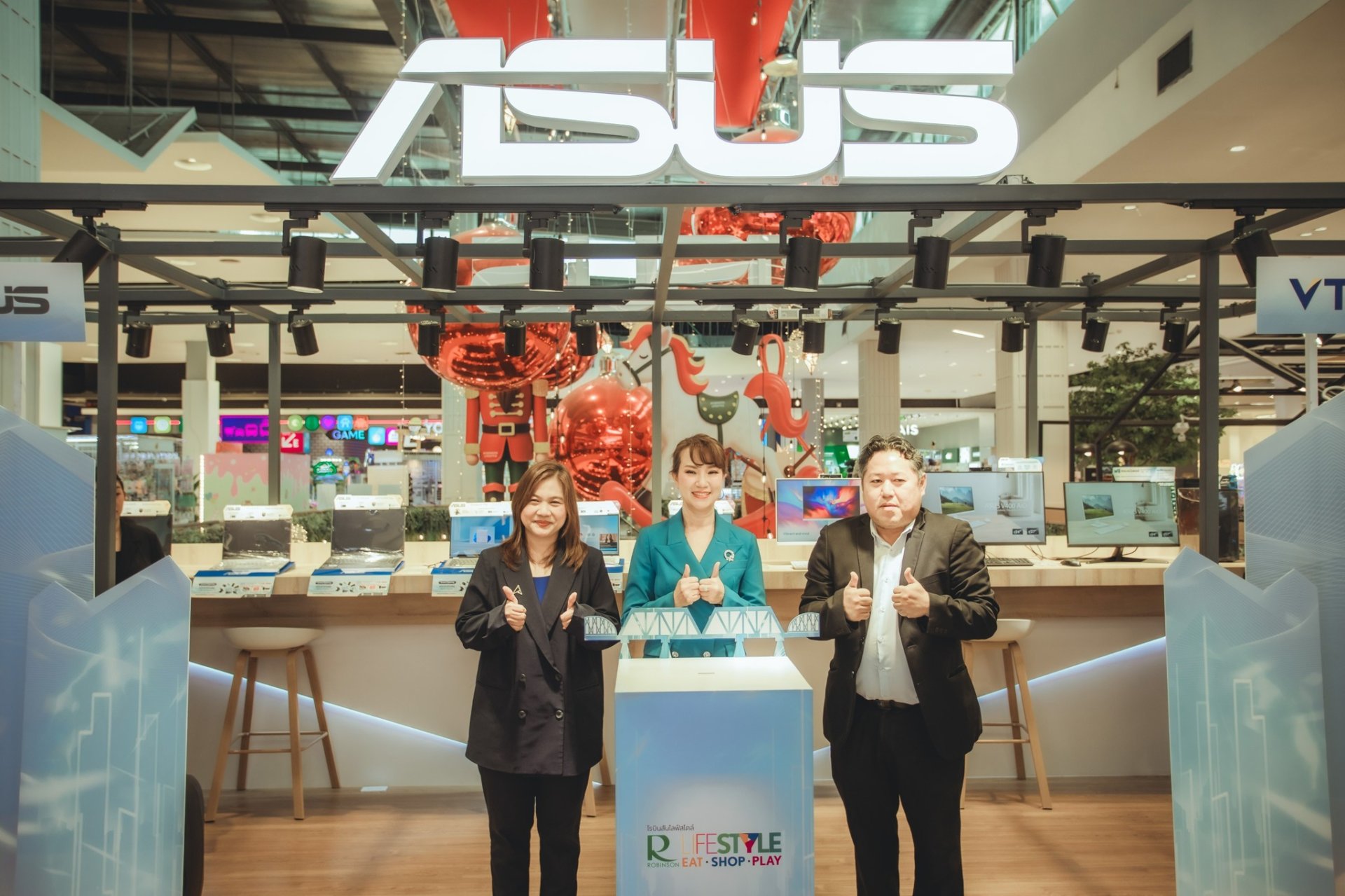 รวมภาพกิจกรรมบรรยากาศ งานฉลองเปิด Grand Opening ASUS Store by VTEC แห่งแรกในจังหวัดกาญจนบุรี เมื่อวันที่ 9 มกราคม 2569 ณ ศูนย์การค้าโรบินสันกาญจนบุรี ภายในงานเต็มไปด้วย Partner พันธมิตรคู่ค้า ร่วมสัมผัสผลิตภัณฑ์เทคโนโลยีสุดล้ำ และดีไซน์ที่เป็นเอกลักษณ์โดดเด่นเฉพาะตัว ทั้ง ASUS zenbook ASUS vivobook ASUS All in One รวมถึง ผลิตภัณฑ์กลุ่ม ASUS ROG Gaming ทุกรุ่น นอกจากนี้ ASUS Store แห่งนี้ยังเป็นศูนย์ Service ให้บริการและให้คำปรึกษาด้านการซ่อม-เคลม ผลิตภัณฑ์จาก Asus อีกด้ว